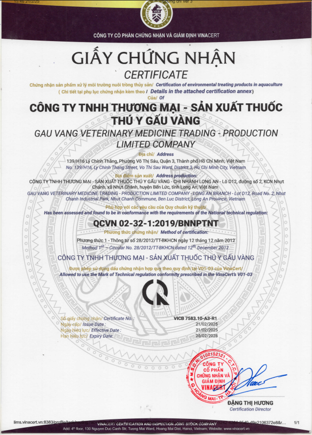 Tác giả: CÔNG TY TNHH THƯƠNG MẠI - SẢN XUẤT THUỐC THÚ Y GẤU VÀNG Ngày đăng: 06/05/2025