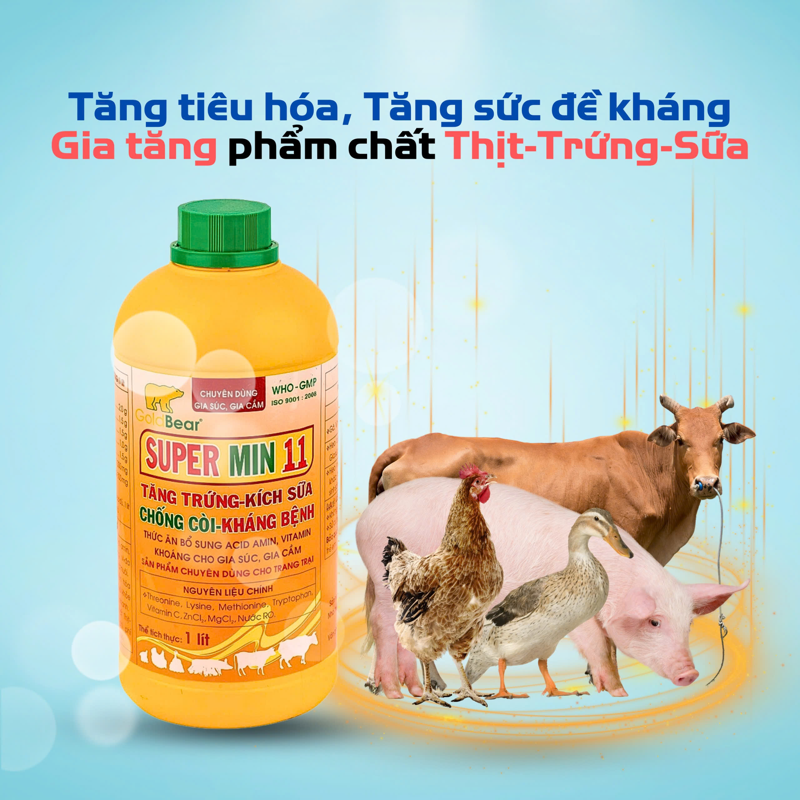 - Đồng thời, Super Min 11 giúp đàn bò, dê, cừu chống còi, tăng sức đề kháng, chống bệnh tốt
