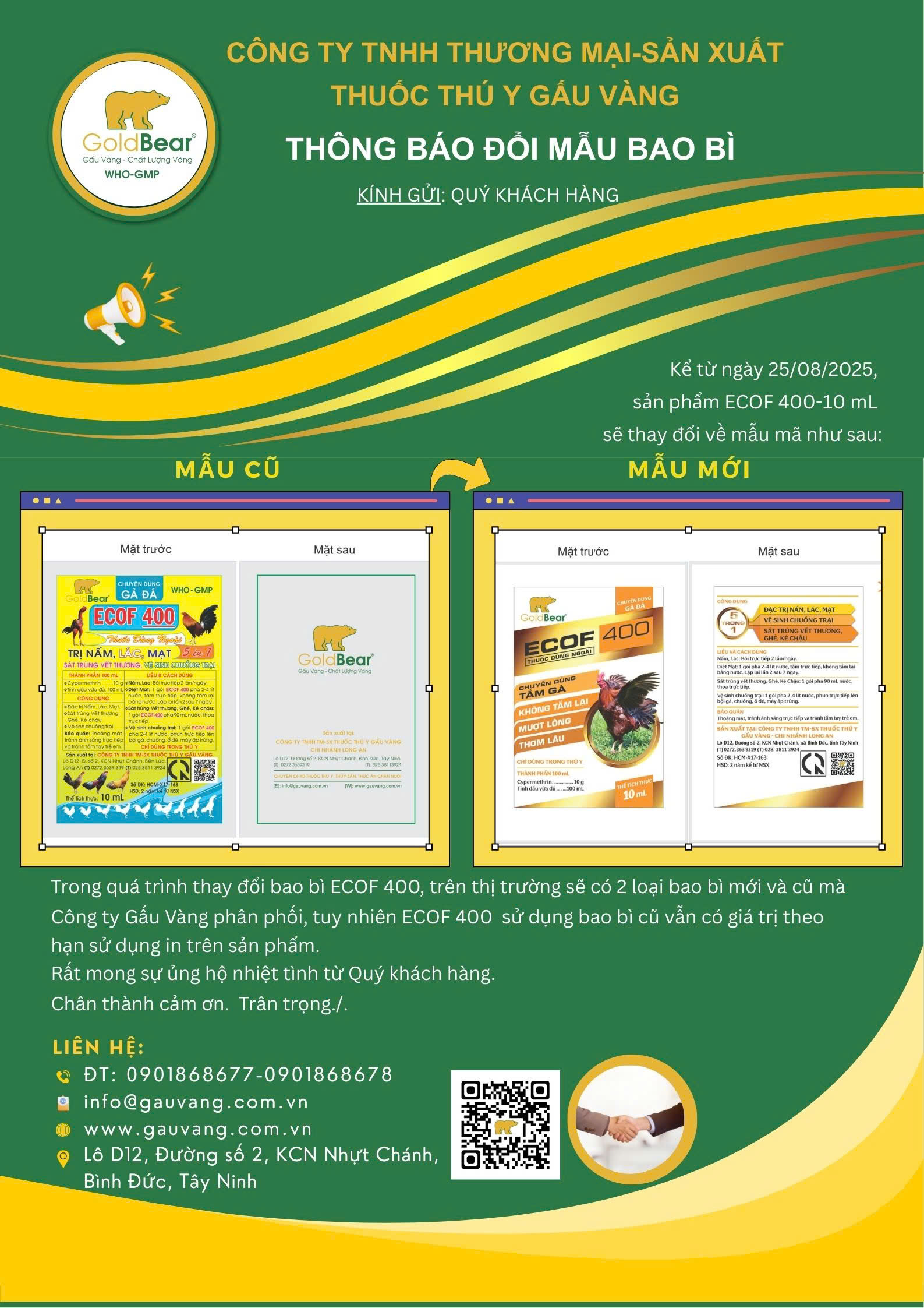 Bắt đầu từ 25/08/2025 sản phảm ECOF 400 10ml sẽ thay đổi về mẫu mã mới, tuy nhiên mẫu cũ vẫn có giá trị theo hạn sử dụng in trên sản phẩm.